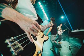 - Alex played the keys during the bridge of "Burn It Down" on Mike's keyboard.