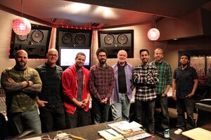 The band had been writing and recording mostly in Los Angeles but also had a few sessions in London and Canada.[26] In Los Angeles, they started working at the Larrabee Studios, but got a new studio headquarters at Sphere Studios[27] because they wanted more space.[28][29] The studio is located in a low-key area on the northeast side of Los Angeles, in The Valley. According to Mike Shinoda, the vocals and foundational songwriting was coming together in the main room, along with his beats and Brad's guitar. There used to be a lounge next to the main room which Joe turned into a second studio, so they were multi-tasking. Joe also brought a lot of his sonic toys and keyboards to the hangout room.[30]