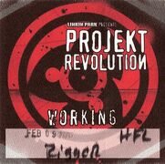 Coming off the most successful year in the band's history (2001), the band took a few weeks to prepare for Projekt Revolution in late January of 2002. During rehearsals for the tour, Mike had this to say to the fans, "Hi guys. Today is the first day of rehearsal for projekt:revolution. We took a break for the holdiays, and to write some new stuff. We're not going to play any of it yet, but we will be doing some cool stuff at the shows. Its very exciting to be coming back to a lot of the cities that we haven't been to since this time last year. At this point, i'm most excited about the DJ battles we're hosting. At every show, two local, unsigned DJs will be facing off to win a trip with the band to play with us and KORN in mexico city, in front of 40,000 people. and the judges will be YOU -- we're putting live audio from the winner of each night online, for you to vote on and you will choose who best DJ is overall. The winner of every night gets a little gift from vestax. anyway, see you at the show, and LP underground members: don't forget to bring your membership card."