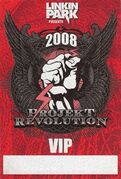 Projekt Revolution 2008 was Linkin Park's fifth edition of Projekt Revolution and their final tour for Minutes To Midnight (the tour following Projekt Revolution in China was completely cancelled due to a back injury that Chester had). For the first time ever, the band took Projekt Revolution over to Europe and played 4 shows total under the Projekt Revolution Tour moniker. The shows took place in München, BY, Berlin, BE, Düsseldorf, NW and Milton Keynes, ENG. Those shows took place in late June, while The United States portion of the tour didn't take place until mid July.